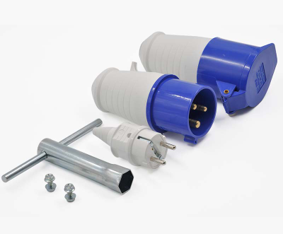 1. Станция. 2. Свечной ключ 3. Вилка электрическая на 220 V (16 А) 4. Вилка электрическая на 220 V (32 А) 5. Колёса 2 шт.+ крепежи 6. Оси для колес 2 шт. 7. Ручки 2 шт.+ крепежи 8. Ножки резиновые 2 шт.+ скоба 9. Гарантийный талон -