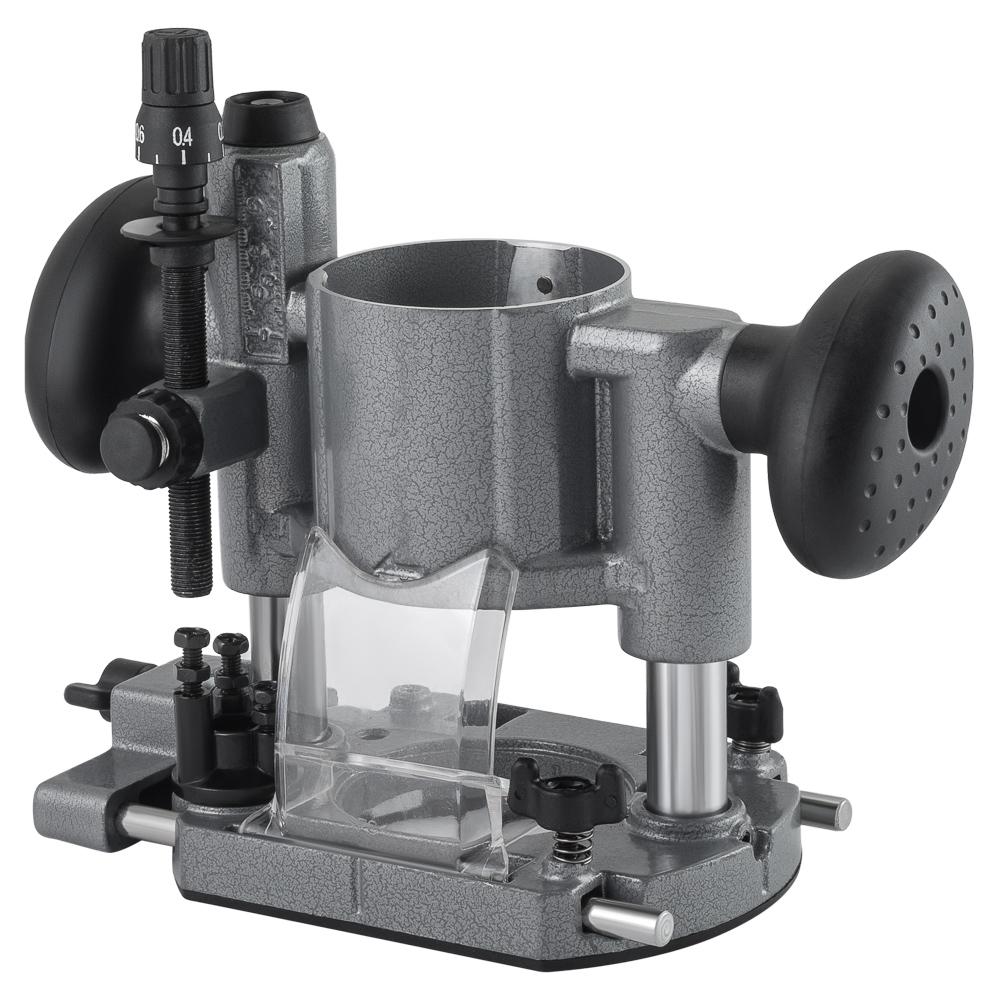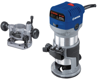 Комбинированный фрезер Витязь МФ-1300 имеет в комплекте два основания: одно для погружного фрезерования с заданной глубиной, второе — для обработки кромок.