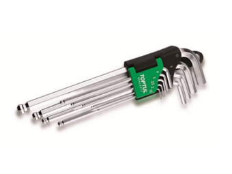Шарообразный наконечник на длинной стороне каждого ключа позволяет вставлять инструмент в шестигранник под углом к болту.