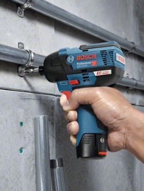 Аккумуляторный импульсный винтоверт Bosch GDR 12V-110 снабжен бесщеточным двигателем, благодаря чему его срок службы выше. Он имеет компактную конструкцию, поэтому им удобно пользоваться в труднодоступных местах и над головой. Предусмотрена встроенная подсветка, что позволяет работать даже при плохом освещении.