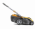 Специальные замки позволяют складывать рукоятку для компактного хранения газонокосилки