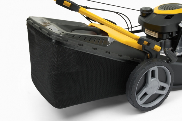 Гибридный травосборник объемом 60 литров с индикатором заполнения мешка для травы позволяет собирать траву, не останавливаясь слишком часто, чтобы опорожнить мешок, и всегда знать, когда он заполнен. На стальном шасси установлен надежный бензиновый двигатель Honda GCVx170 объемом 167 куб. отличная производительность и надежность.