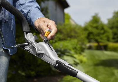 Эксклюзивная и эргономичная система регулировки One Motion обеспечивает максимальный комфорт для пользователя: всего одной рукой вы сможете отрегулировать все функции косилки, включая высоту среза и рукоятку. Удобные спусковые крючки на ручке также позволяют легко сложить ее.