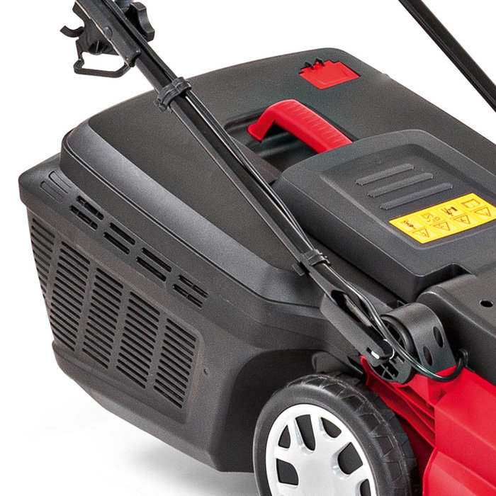 Скошенная трава поступает с травосборник, объем которого 47 литров, выбрасывается на газон через задний дефлектор или мульчируется.