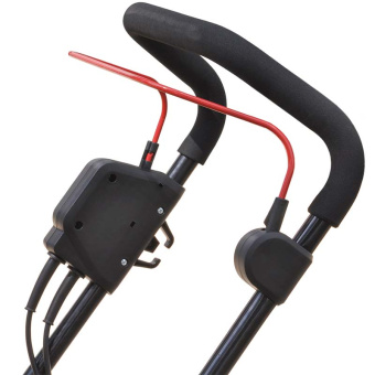Cкладная конструкция. Рукоятка за несколько секунд складывается вдоль корпуса газонокосилки