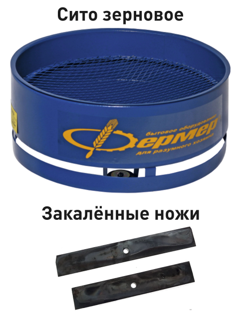 Степень помола зерна регулируется с помощью сменных сит. В заводской комплектации на измельчителе установлено сито с диаметром ячейки 5мм. По желанию можно можно дополнительно приобрести сито на 4мм либо на 6мм.