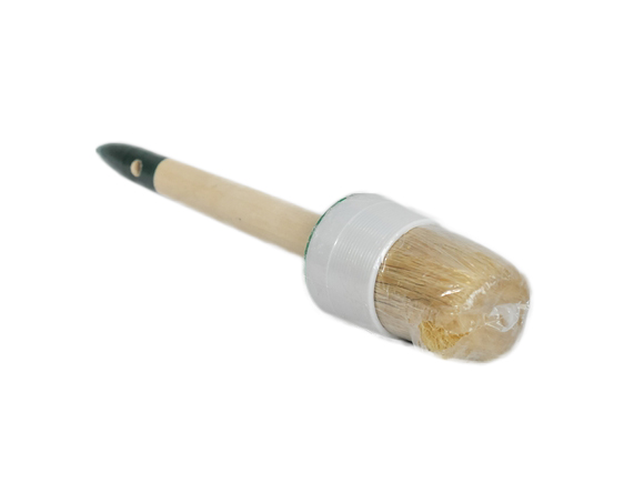 Кисть круглая с натуральной щетиной. Бандаж выполнен из пластика. Деревянная неокрашенная ручка.