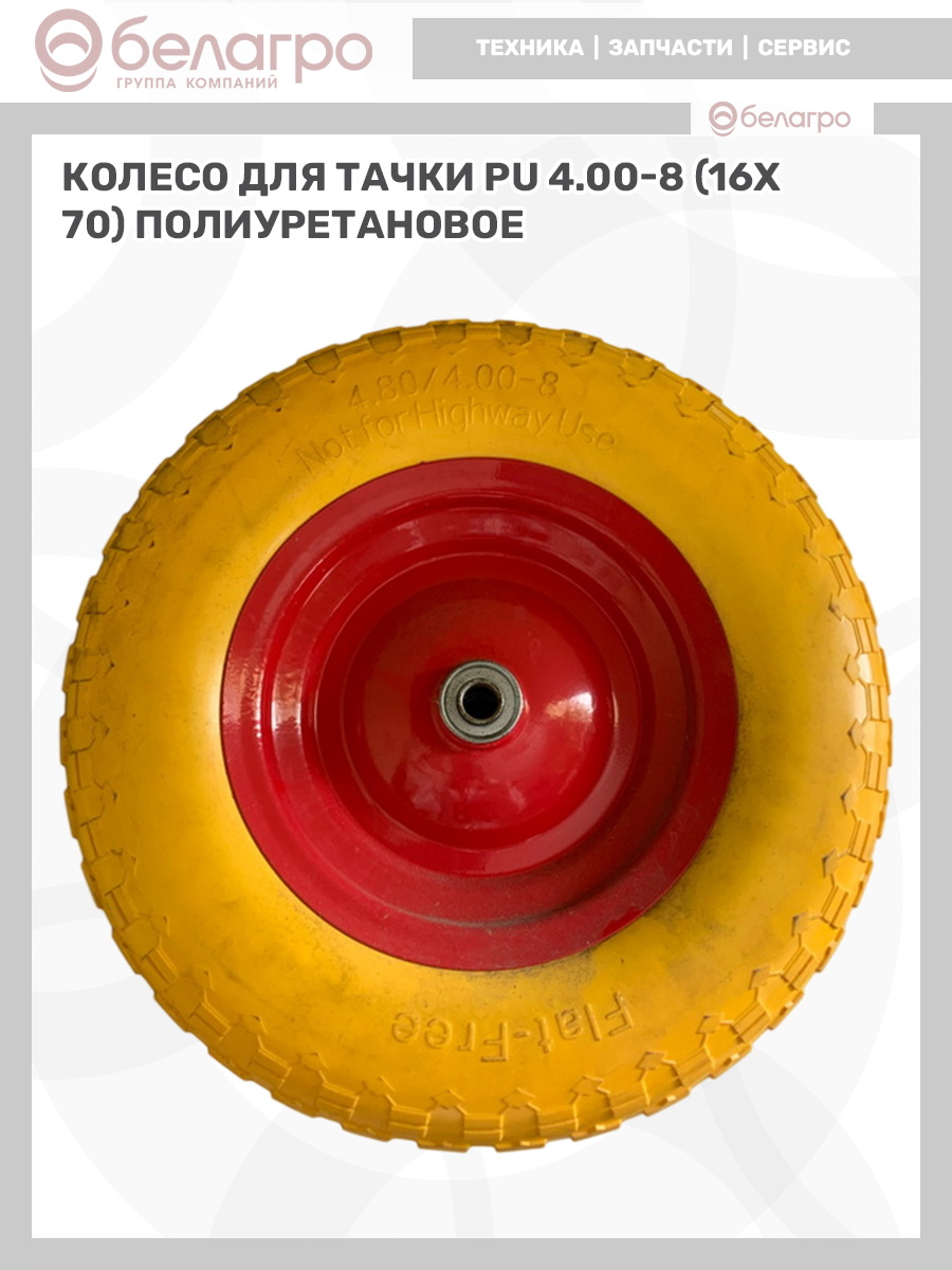 Колесо для тачки PU 4.00-8 (16х70) полиуретановое