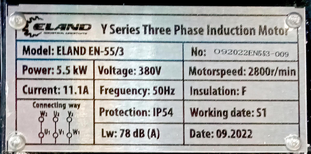 Питание электродвигателя: Трехфазная переменная сеть (380В) с частотой 50гц.