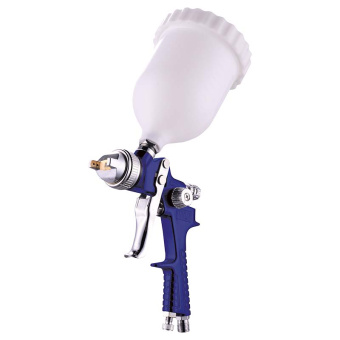 верхний пластиковый бак 600 мл; - регулировка подачи материала; -регулировка подачи воздуха; -регулировка факела распыла; - сопло 1.4 мм; - легкий вес;