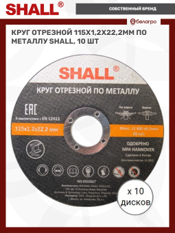 Круг отрезной 115х1,2х22,2мм по металлу SHALL, 10 шт