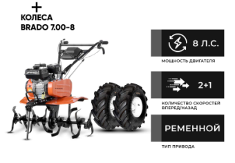 Культиватор бензиновый SKIPER SP-700 + колеса BRADO 7.00-8 Extreme (комплект)