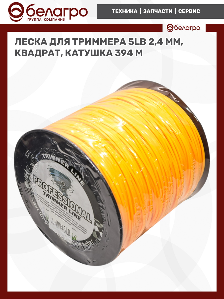 Леска для триммера 2,4 мм, квадрат 5LB (катушка 394 м)