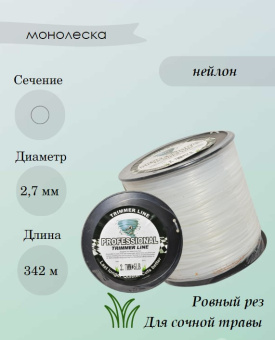 Леска для триммера 2,7 мм, круг 5LB (катушка 342 м)