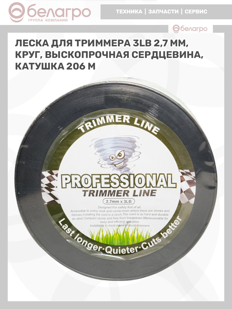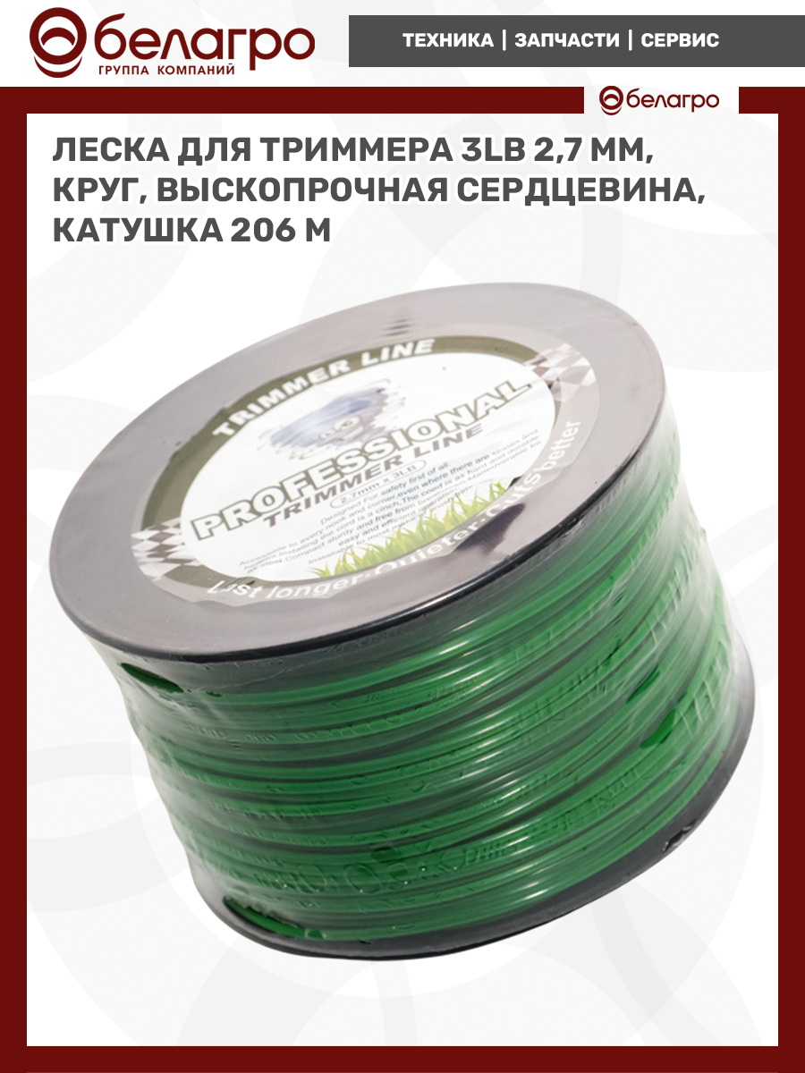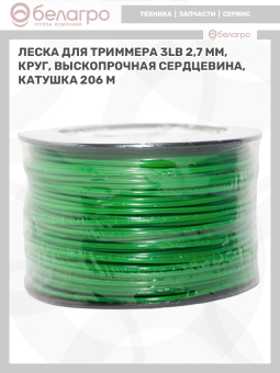 Леска для триммера 2,7 мм, круг+выскопрочная сердцевина 3LB (катушка 206 м)
