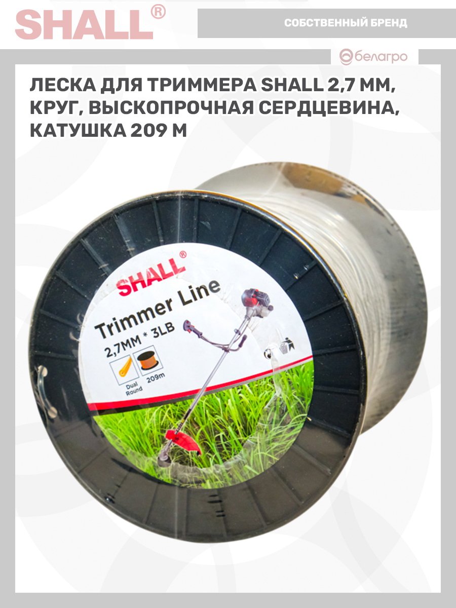Леска для триммера 2,7 мм, круг+выскопрочная сердцевина SHALL (катушка 209 м)
