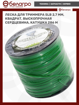 Леска для триммера 2,7 мм, квадрат+выскопрочная сердцевина 5LB (катушка 286 м)
