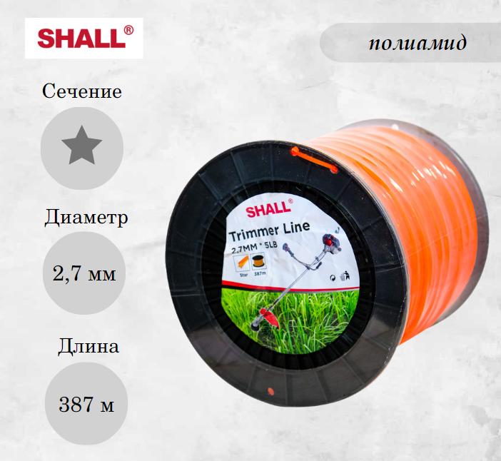 Леска для триммера 2,7 мм, звезда SHALL (катушка 387 м)