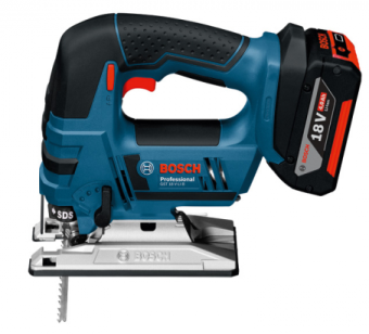 Аккумуляторный лобзик Bosch GST 18 V-LI B используется для работы в помещениях с отсутствием электричества. Благодаря системе SDS, смена оснастки не занимает много времени. В комплект входят 3 пильных полотна, что позволяет приступать к работе сразу после покупки.
