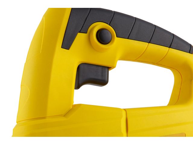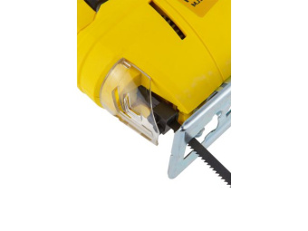 Лобзик оснащен удобной прорезиненной рукояткой. Стальная подошва регулируется под разными углами. Возможно подключение пылесоса.