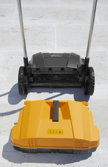 Комплектуется двумя круглыми щетками и одной щеткой для сбора мелкой пыли. Круглые щетки двигаются в разных направлениях для более тщательной уборки. Весь мусор собирается в бункер на 20 л.