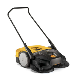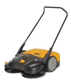 Комплектуется баком на 50 л для сбора мусора. Машина оснащена воздушным фильтром для улавливания мелких частиц пыли. Щетки могут устанавливаться в одно из восьми положений поворотом регулятора. Рукоятка регулируется под рост оператора