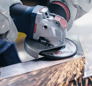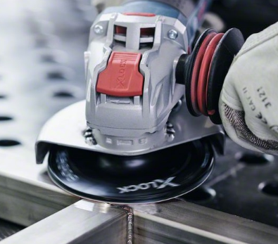 Нет фланцевой гайки, соответственно увеличивается диапазон углов, под которыми УШМ может располагаться по отношению к заготовке. Bosch указывает, что с системой X-Lock возможно даже плоское шлифование.