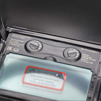 Сварочная маска с регулировкой степени затемнения и увеличенной площадью защиты области шеи, ушей оператора - зон наиболее чувствительных к воздействию ультрафиолетового излучения. Оснащена 2-я сенсорами.
