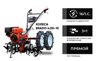 Мотоблок бензиновый SKIPER SP-1600SE EXPERT + колеса BRADO 4.00-10