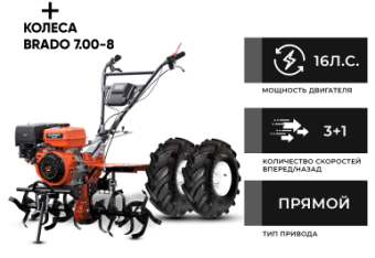 Мотоблок бензиновый SKIPER SP-1600SE EXPERT + колеса BRADO 7.00-8 Extreme