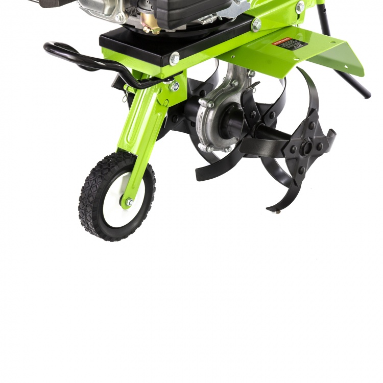 Удобная транспортировка – 6-дюймовое колесо (15.24 см), вынесенное вперед, и рукоятка на корпусе позволяют быстро доставить культиватор в нужное место или убрать на длительное хранение. -