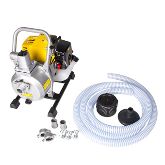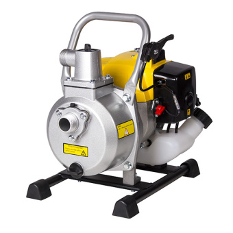Оснащена одноцилиндровым 2-тактным двигателем мощностью 1.22 л.с., который работает на смеси бензин/масло. Наличие топливного насоса обеспечивает легкий и быстрый запуск мотора. Агрегат установлен на прочную раму из металла для устойчивости на любой поверхности. Вес - всего 7.2 кг. В конструкции предусмотрена рукоятка для транспортировки мотопомпы.