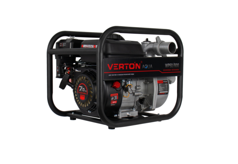 Мотопомпа Verton WP 50/600 (7л.с/212см3,50мм/2", 600л/мин,36м3/ч, h8м/26,d8мм)