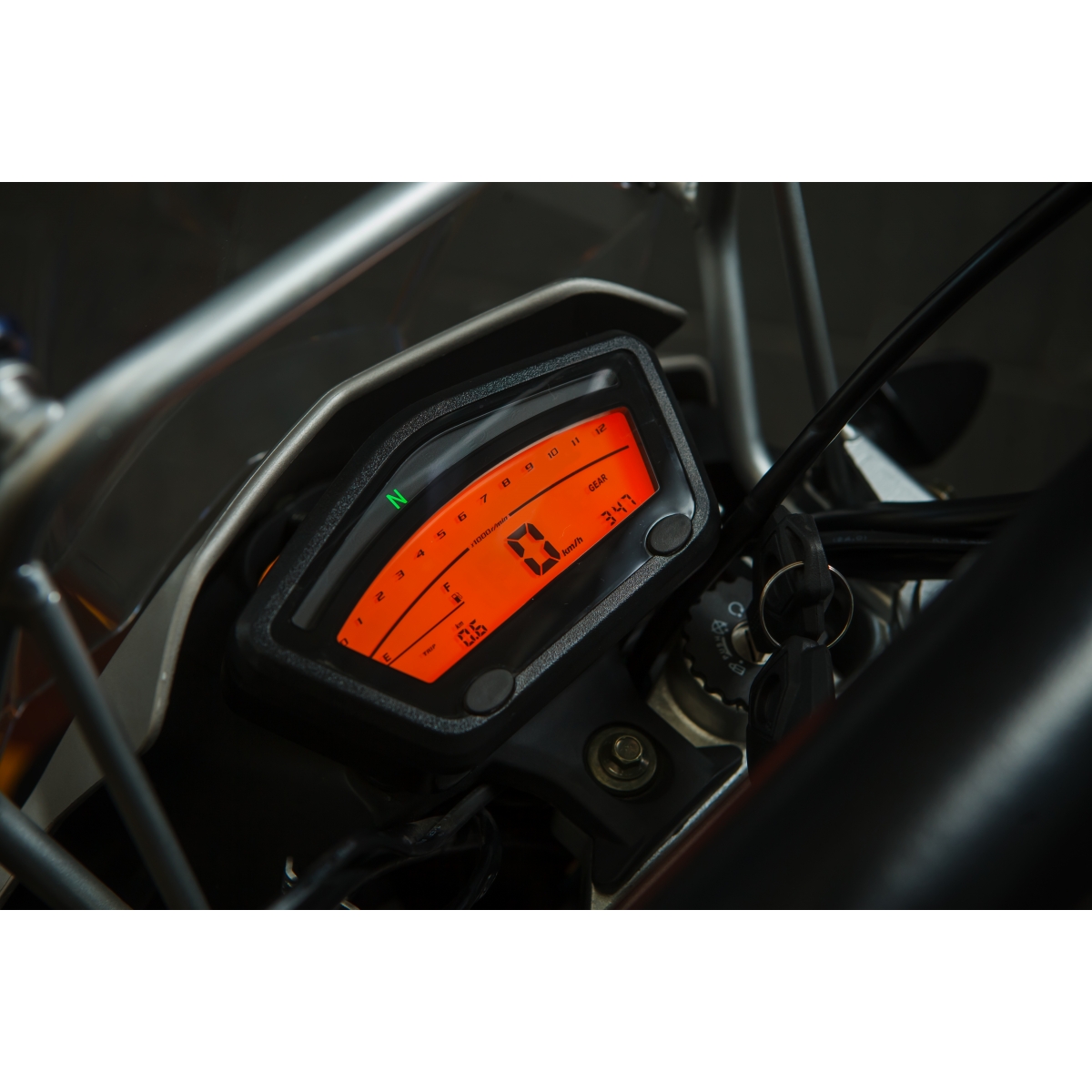 - Панель приборов электронная и снабжена всеми нужными индикаторами: тахометр, спидометр, счетчик суточного пробега, отображение включенной передачи, датчик уровня топлива и часы. В одном блоке с ней расположена и USB-зарядка.