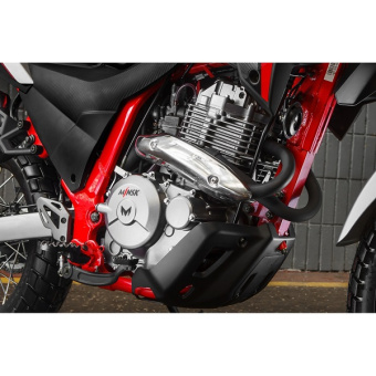 Двигатель одноцилиндровый, четырехклапанный, с двумя распредвалами, воздушно-масляным охлаждением и шестиступенчатой трансмиссией.