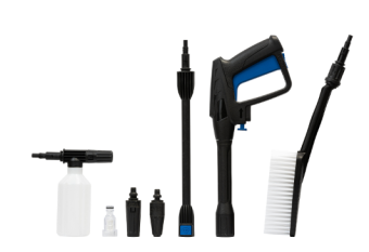 Щетка для очистки дисков, пеногенератор, веерная и грязевая насадки, фильтр очистки воды в комплекте -