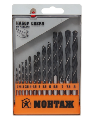 -MT146541 Набор сверл по металлу 2-8мм HSS 4241, ц/х, DIN338 МОНТАЖ (набор/13шт)БитыГубцевый инструментДиски, кругиЗаклепочники, степлерыЗубило, ломы, гвоздодерыИзмерительные приборыИзолента,стяжки, зажимные повязкиКлючи, наборы ключейКрепежиМалярный инструментМолотки и кувалдыНаборы инструментовНапильники, рашпили, надфилиРежущий инструментСистема храненияОтвертки, наборы отвертокПилки для лобзиков, ножи для рубанковПлашки, метчики, резцыПрижимные приспособленияСъемникиТопоры, стамескиЩетки проволочныеШлифование и полированиеШприцы, пистолеты, наборы покрасочныеЭлектропаяльникиНабор насадок для гравераМасленки, нагнетателиСредства защитыЭкстракторы