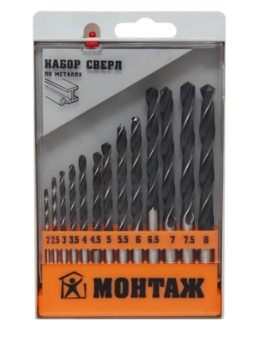 MT146541 Набор сверл по металлу 2-8мм HSS 4241, ц/х, DIN338 МОНТАЖ (набор/13шт)