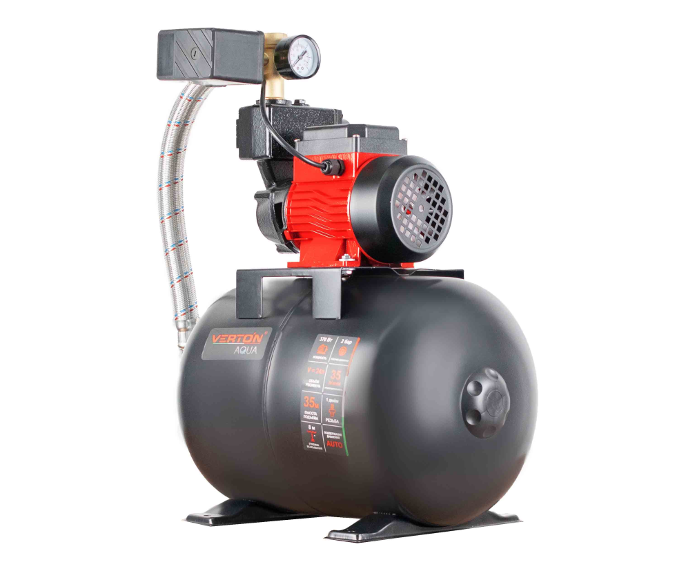 Насосные станции Verton AQUA с объемом ресивера 24 литра оснащены асинхронным двигателем, мощностью до 1100 Вт., обеспечивают подъем жидкости с глубины до 9 м.