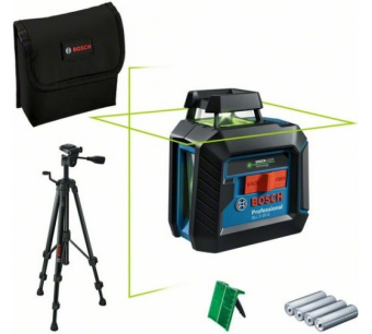Линейный лазер с горизонтальным зеленым лучом на 360° в комплектации со штативом BT 150