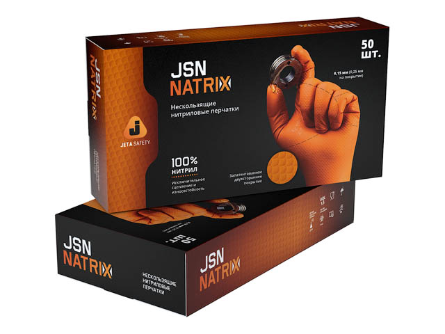 Нескользящие одноразовые нитриловые перчатки JSN NATRIX, длина 240мм, толщина 0,15мм.