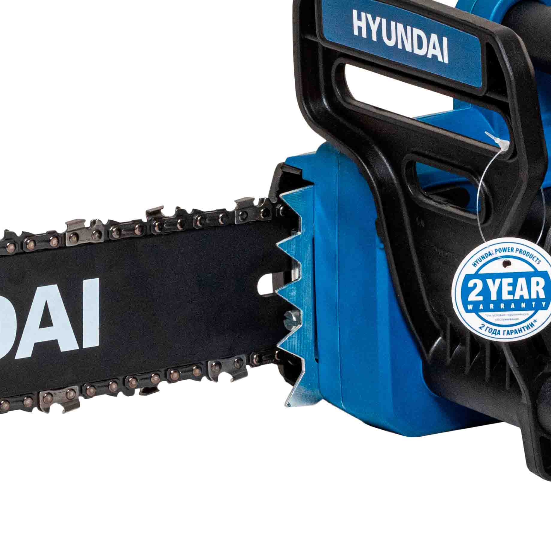 Электрический двигатель HYUNDAI.Cпециально разработан для цепных пил, обладает высокой мощностью 2100 Вт и низким уровнем шума.