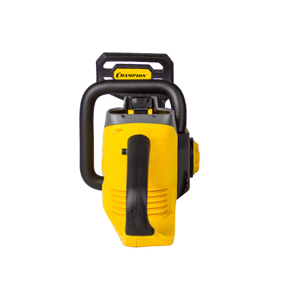 Легкая цепная аккумуляторная пила Champion CSB400 с 14 дюймовой шиной и продольным двигателем. Отсутствие выхлопа и низкая шумность позволяет использовать пилу в помещениях.