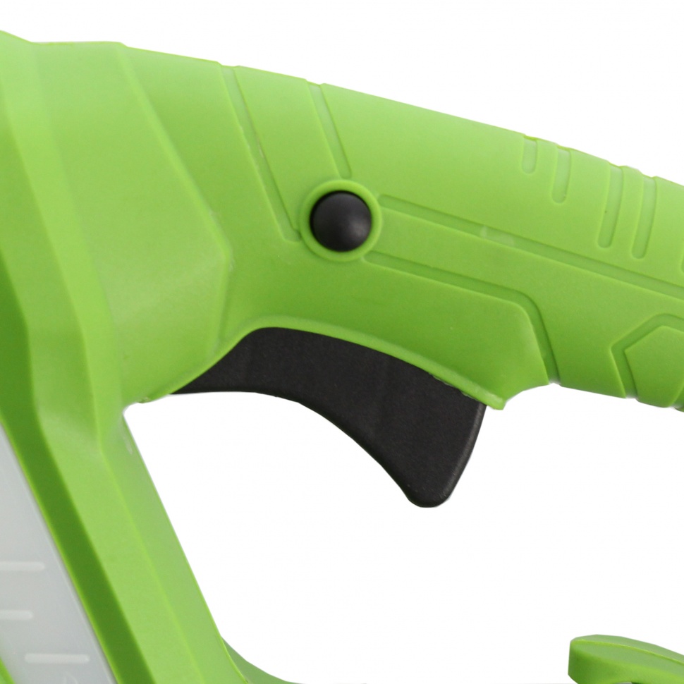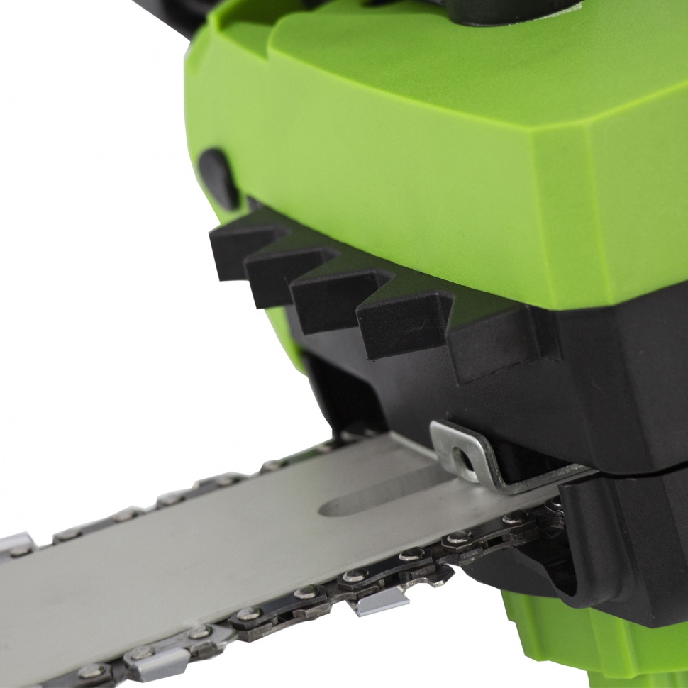 Пила работает от электрической сети, поэтому она экологична и не вредит окружающей среде опасными выхлопами. Она не требует приготовления топливной смеси и умения работы с бензиновым двигателем. Инструмент готов к работе сразу после приобретения и может использоваться не только на открытом воздухе, но и в помещении.