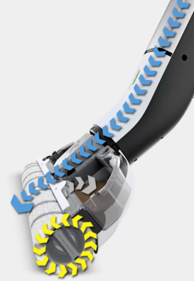 Вымыть весь пол чистой водой позволяет аппарат FC 3 Cordless, в котором предусмотрена инновационная функция самоочистки: вращающиеся роликовые щетки непрерывно увлажняются чистой водой и очищаются от грязи, которая собирается в бачок для грязной воды. Благодаря этому на 20 % повышается эффективность уборки по сравнению с использованием швабры.