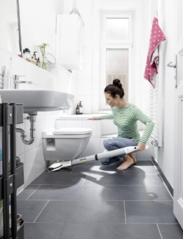 Вымыть весь пол чистой водой позволяет аппарат FC 3 Cordless, в котором предусмотрена инновационная функция самоочистки: вращающиеся роликовые щетки непрерывно увлажняются чистой водой и очищаются от грязи, которая собирается в бачок для грязной воды. Благодаря этому на 20 % повышается эффективность уборки по сравнению с использованием швабры*. При этом благодаря узкой форме корпуса аппарат занимает минимум места при хранении и легко проникает под мебель, а шарнирное крепление щеточной головки обеспечивает легкую очистку пола в углах и вдоль стен. Время высыхания пола составляет лишь около 2 минут, что позволяет без опасений использовать аппарат для уборки любых твердых напольных покрытий (даже паркета). Его мощный литий-ионный аккумулятор обеспечивает независимость от расположения розеток и максимальную свободу движений. Светодиодный индикатор на корпусе аппарата постоянно отображает состояние заряда аккумулятора в удобной для пользователя форме. * По результатам проведенных испытаний, аппарат FC 3 Cordless обеспечивает повышение эффективности уборки на 20 % в сравнении с обычной шваброй. Значение определено на основании усредненных результатов контроля эффективности очистки, сбора грязи и очистки краевых участков.