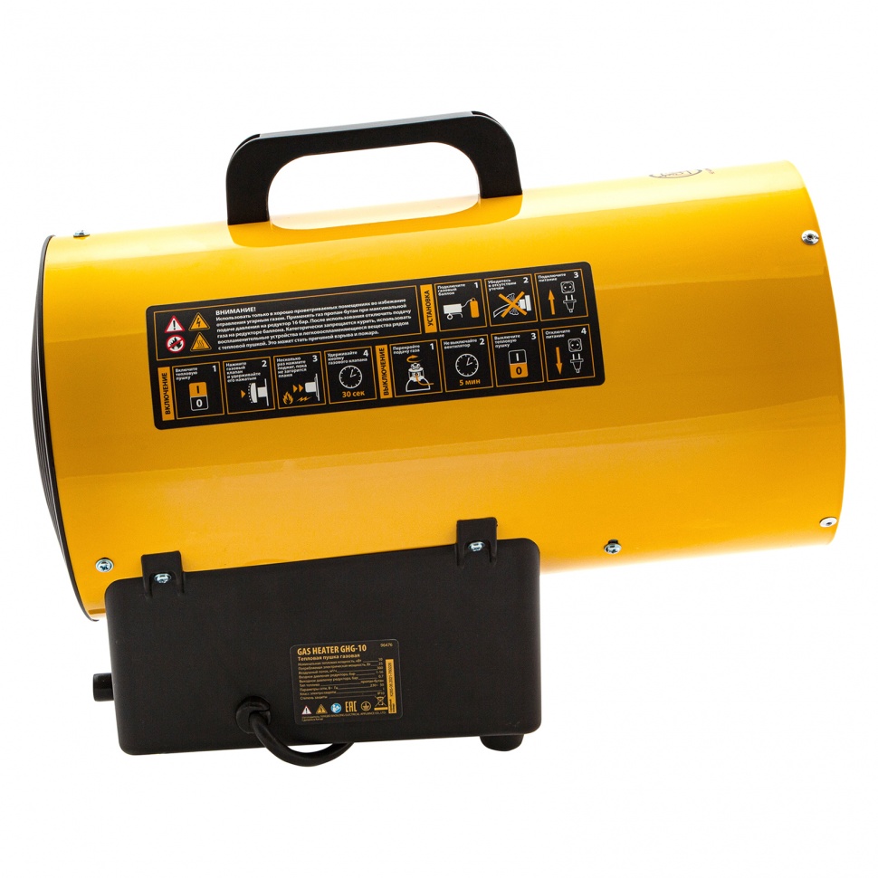 Газовая тепловая пушка Denzel GHG-10 имеет тепловую мощность 10 кВт и применяется для работы в мастерских, гаражах, строящихся объектах, а также нашли особую популярность при установке натяжных потолков.Тепловая пушка отличается высокой производительностью 300 м3/ч при экономичном расходе топлива 0,7 кг/ч и компактных габаритах.