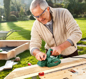 Рубанок Bosch PHO 1500 предназначен для обработки деревянных поверхностей. С помощью широкой рукоятки можно не только крепко удерживать инструмент во время работы, но и регулировать глубину строгания от 0 до 1.5 мм. Кнопка блокировки фиксирует клавишу "Пуск" и предотвращает непреднамеренное включение инструмента. Имеется возможность выборки четверти.