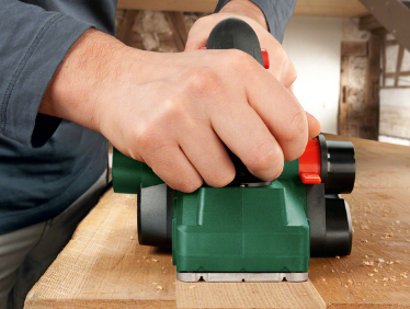 Рубанок Bosch PHO 1500 предназначен для обработки деревянных поверхностей. С помощью широкой рукоятки можно не только крепко удерживать инструмент во время работы, но и регулировать глубину строгания от 0 до 1.5 мм. Кнопка блокировки фиксирует клавишу "Пуск" и предотвращает непреднамеренное включение инструмента.