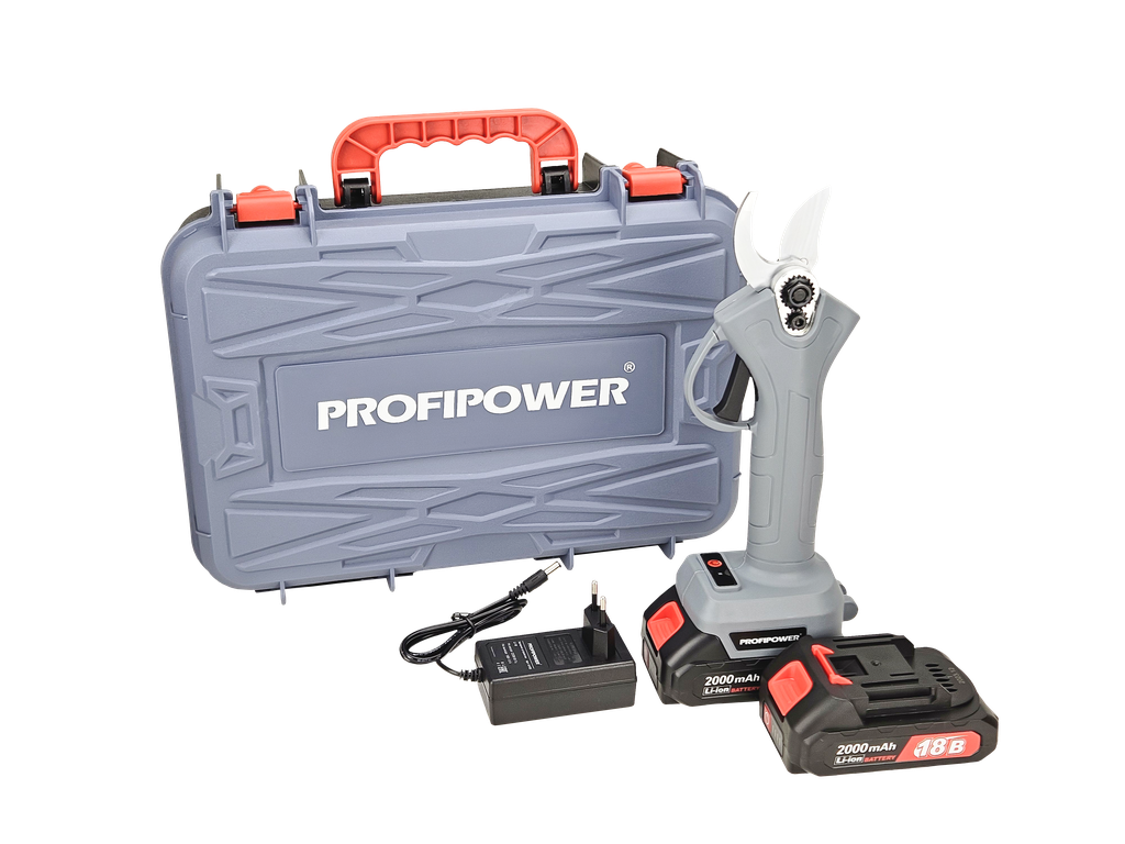 Секатор аккумуляторный ProfiPower MKGSP-18V (Li-ion-2шт, 2.0Ач, З/У, зап. лезвие, кейс)